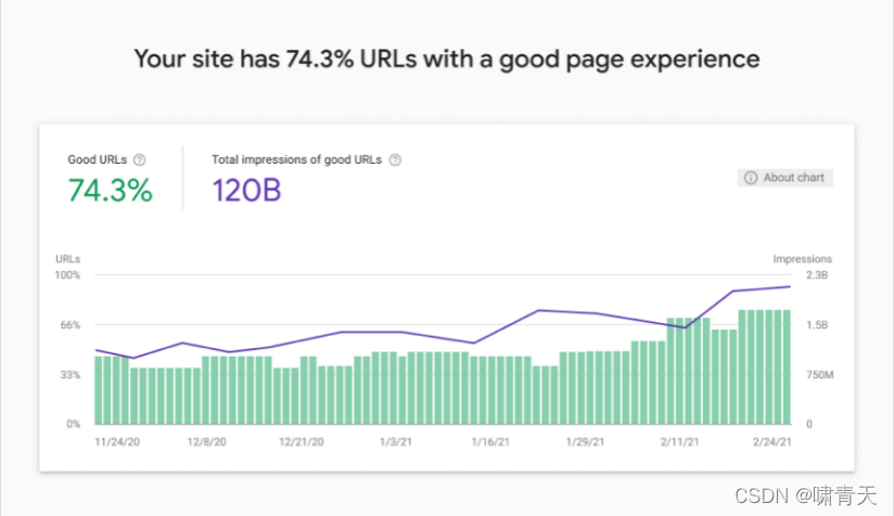 2020年 11 月,Google曾宣布在 Google 搜索中推出网页体验排名规则变更,称之为“网页体验更新”。谷歌在2021年的6月到8月,用了两个月终于将该算法,也即是网页核心指标(Core Web Vitals,CWV)应用到了全球范围内,还在9月份和11月份,优化了该算法,可见该算法的重要性。