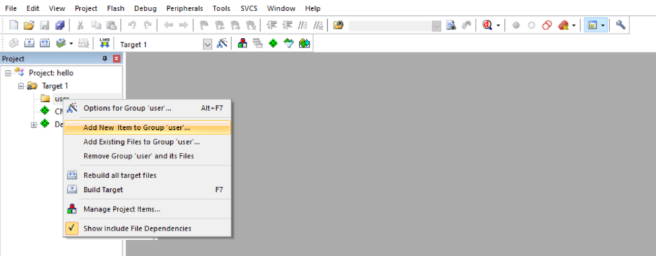 1.鼠标右键单击Source Group 1,选择Add New Item to Group