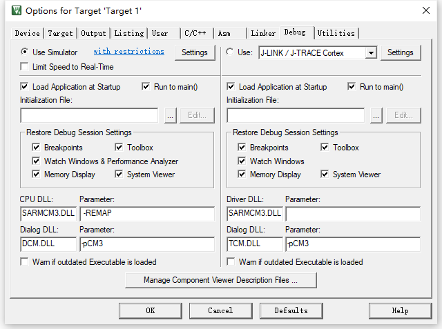 设置硬件仿真器为J_Link(根据实际情况选择),仿真器的模式设置为JTAG接口或者SW(根据实际情况选择)。设置完成,连接相应的仿真器会有对应信息显示。