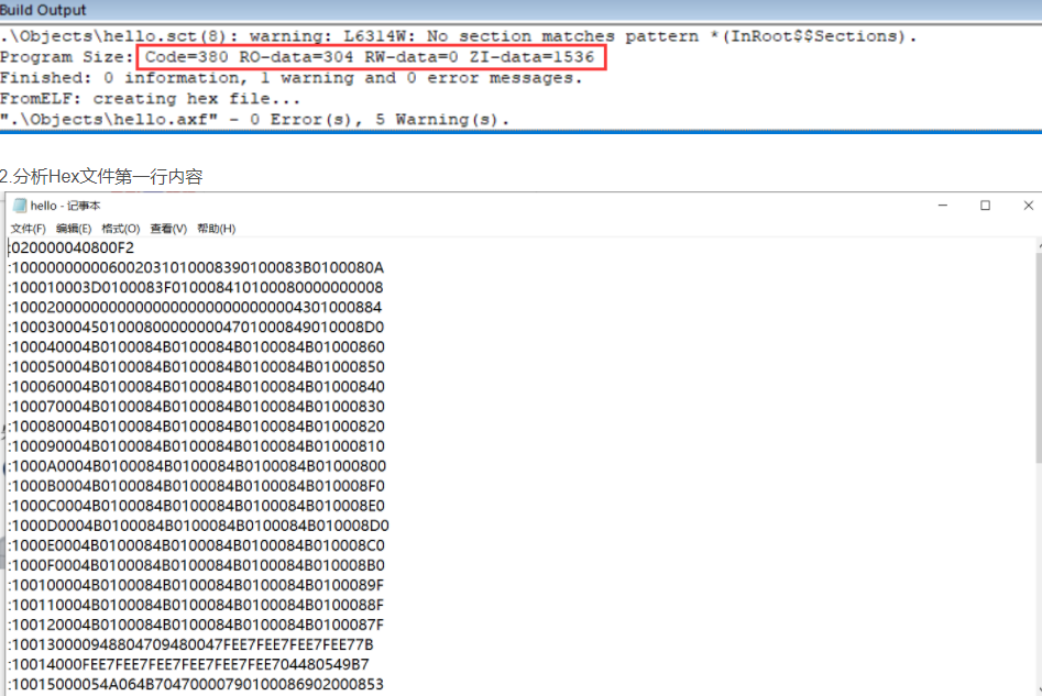 第一行内容分别是0x02,0x00,0x00,0x04,0x08,0x00,0xF2。