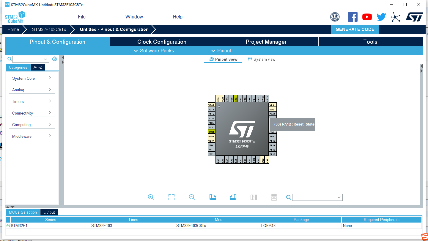 在STMCUBEX,新建一个项目,例如图中用的单片机是STM32103C8