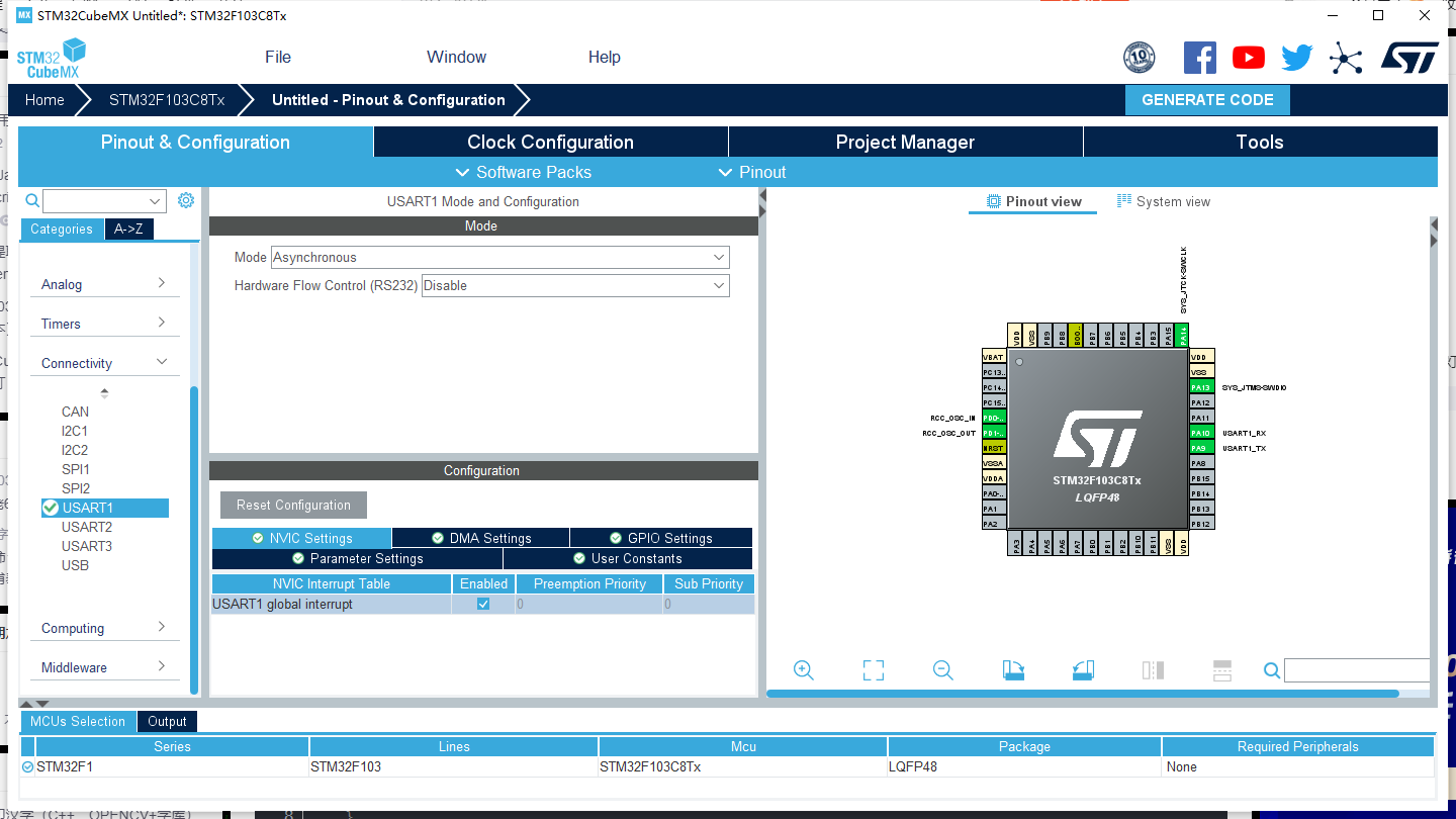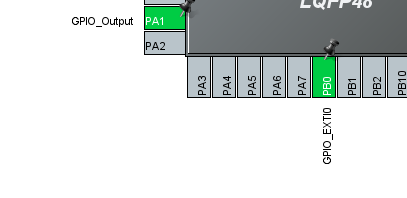 将PB0选为外部中断触发器(GPIO_EXTI0),PA1是控制led灯的,和将它选择为GPIO_output