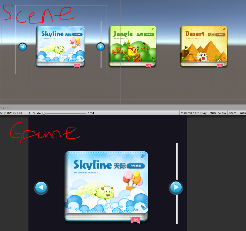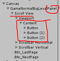 - 创建panel后在面板下边创建UI-ScrollView,在content下完成当前游戏所需UI。