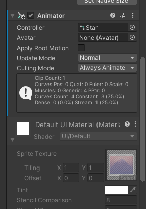 4.星星预制体内添加一个animator,控制器选中刚刚做的星星控制器。