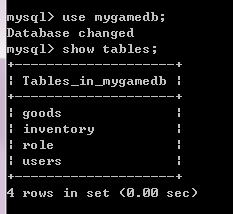 查看这个数据库下的表:show tables;