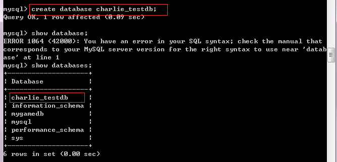创建一个库:create database 库名;