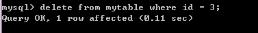 删除id=3的这一列数据:delete from 表名 where id = 3;