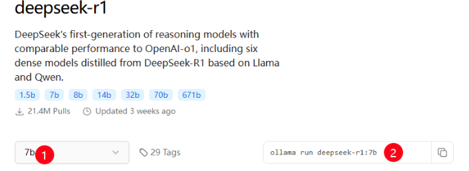 - 访问Ollama Search 确定需要安装的模型,当前常用的模型有deepseek R1、Qwen 2.5等,可按需选择