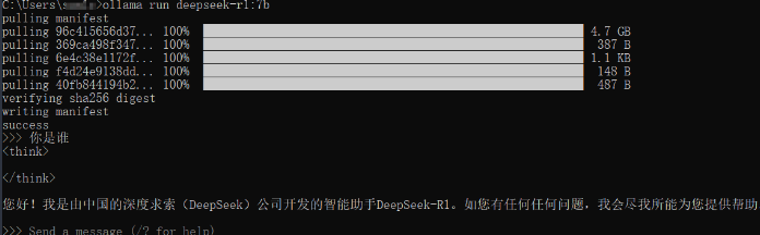 - 确认需要安装的模型之后,在命令行上运行run命令等待模型下载安装