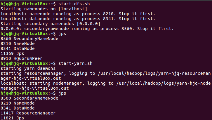 启动HDFS与YARN