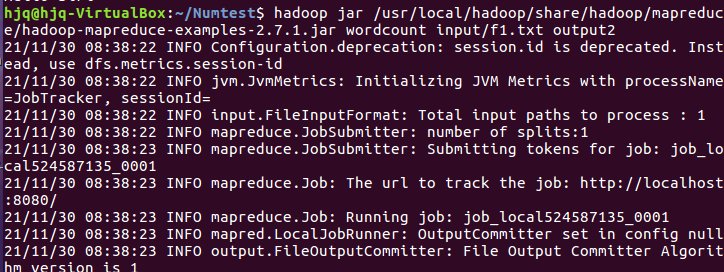 2.3分布式运行自带词频统计示例