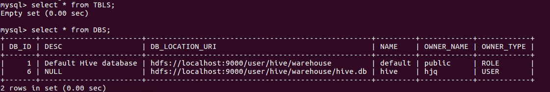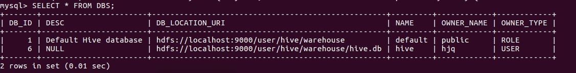 - mysql查看hive元数据表DBS