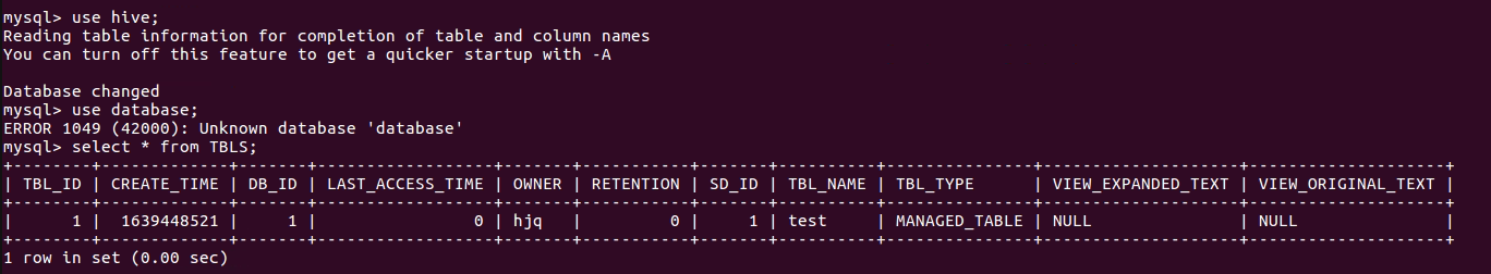 - mysql查看hive元数据表TBLS