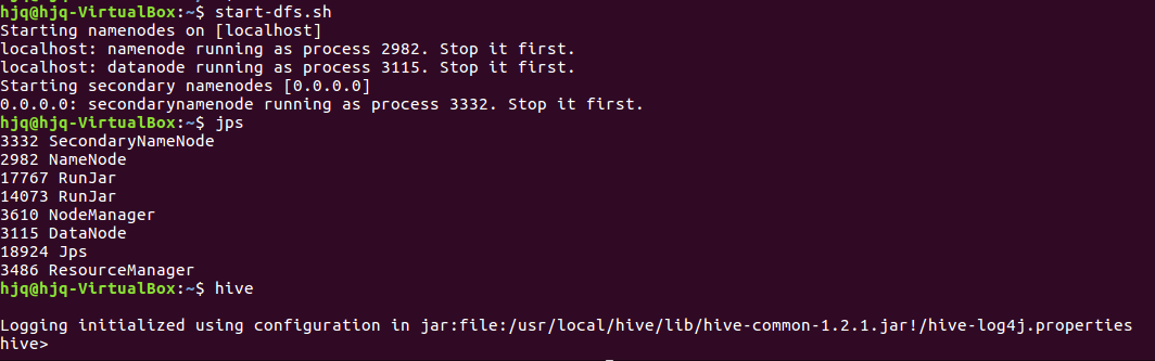 - 启动Hadoop--启动Hive--退出Hive--停止Hadoop