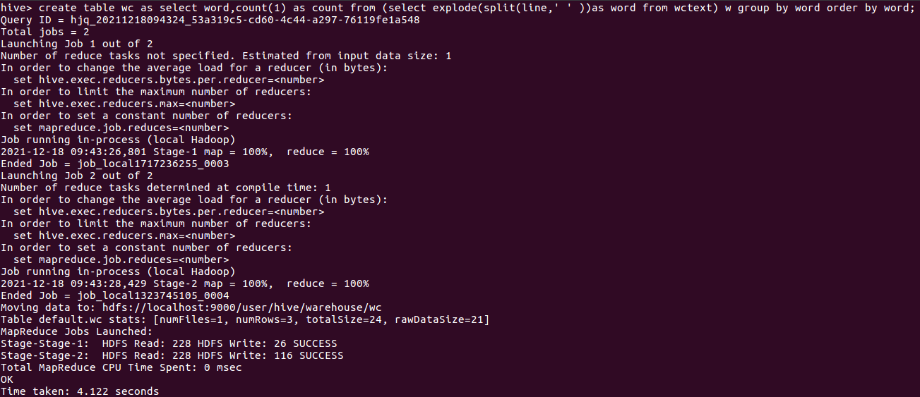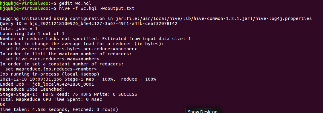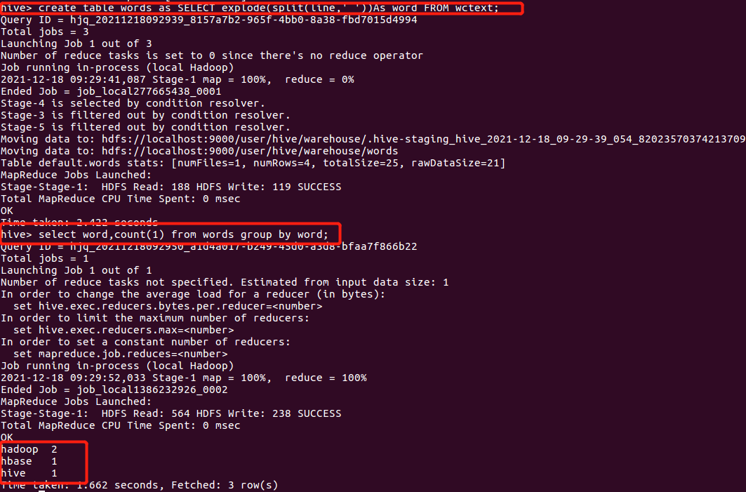 3.13本地调用本地hql文件进行词频统计,将结果保存为本地文件