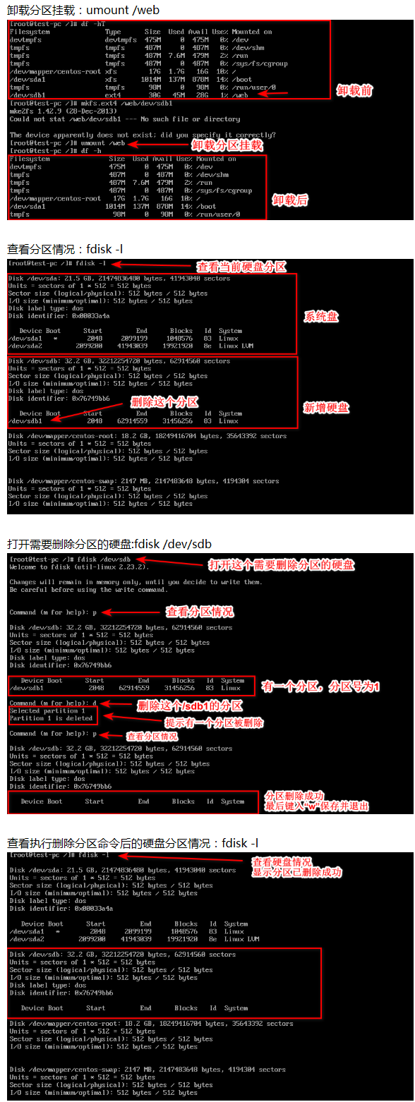 Linux卸载以及删除分区