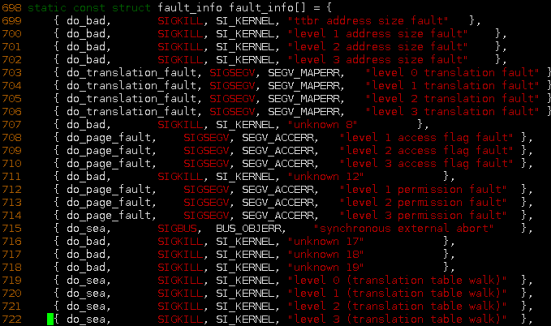 fault_info 数组中对应的处理函数对当前的异常进一步处理,如果发现当前的data abort确实是属于非法,无法处理的,比如paging request 非法地址,就会抛出异常信息,并走到panic流程。