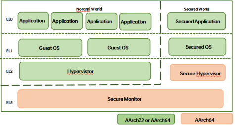 一个实现可以不包括所有的异常级别,但都必须包括EL0和EL1。EL2和EL3是可选的。