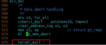 kernel_exit恢复现场。主要恢复kernel_entry保存在栈上的处理器相关寄存器等。至此发生在el1级别的data baort异常处理流程分析结束。
