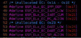 ESR_ELn的BIT[31:26]指示处理程序执行对应的异常,比如: