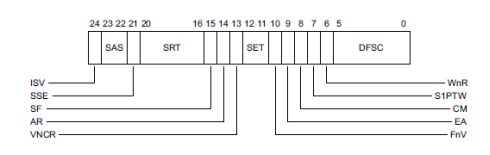 位[24:0]构成ISS域(Instruction Specific Syndrome),根据EC域指定的不同异常类型,ISS有不用的解释。有:
