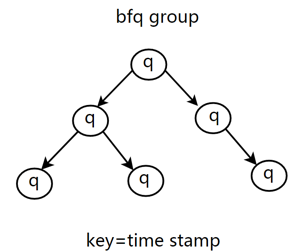 bfq同cfq一样,也为每个进程分配一个队列称作bfqq,通过时间戳维护在红黑树中(cfq是通过vdisktime维护在红黑树中)。与cfqq轮询机制不同,bfqq红黑树中只有eligible状态的bfqq才会被选择调度。我们定义如下变量: