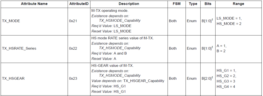所以可以直接从寄存器地址来判断这个寄存器是Unipro的哪一个层次的寄存器,比如,MPHY层的寄存器地址都是0xXX,而PA层的地址是0x15xx,DME层本身的地址是0xDxxx。
