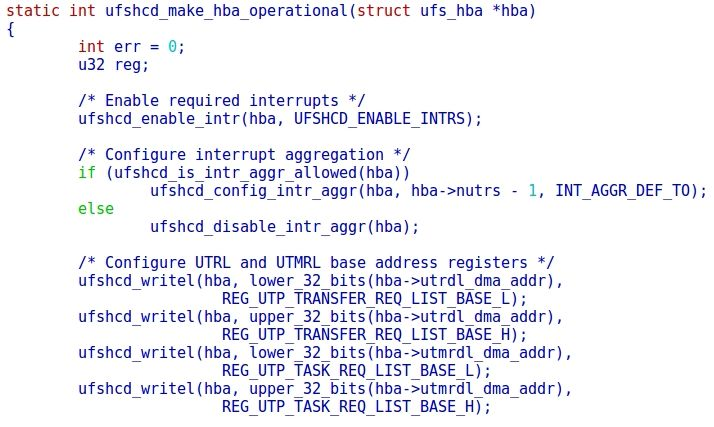 总之,和通用的驱动初始化流程一样,ufs驱动的初始化也主要包含资源申请,controller初始化和使能,建立链接,完成中断注册,注册中断上半部和中断下半部处理函数。