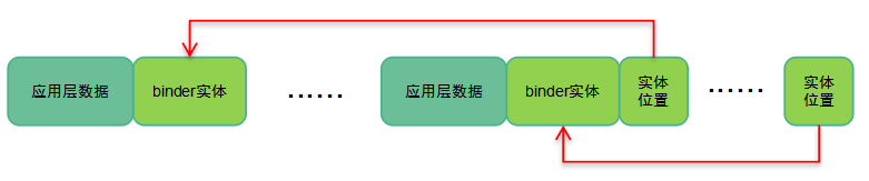 Binder Client和server之间通信的基本单元是应用层的数据+相关的binder实体对象数据,这个基本的单元可以是1个或者多个。为了区分开各个基本的单元,在应用层数据缓冲区的尾部有一个数组保存了各个binder实体对象的位置。每一个binder实体用flat_binder_object来抽象,主要的成员包括: