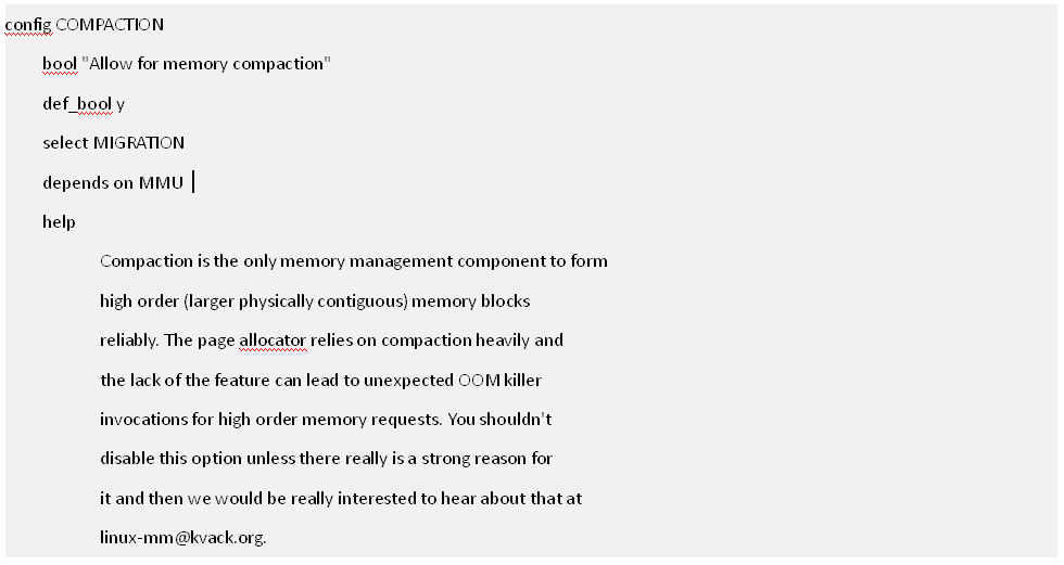 如果想打开内存规整,内核需要打开相关的配置(默认为y)