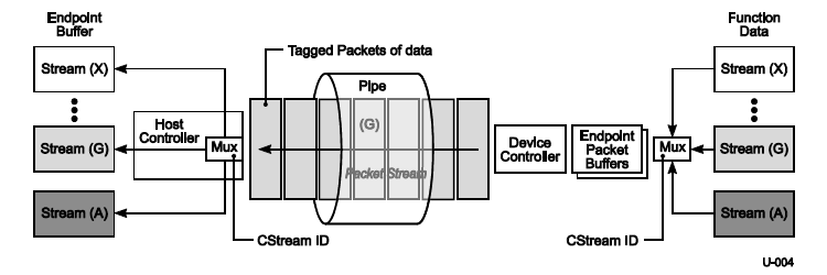 一个标准的批量端点有单组端点缓冲区(Endpoint Buffers)与之相关联。流扩展了一个端点可以访问的主机缓冲区个数,从1直到65533。在主机缓冲区和Stream ID之间有一个1:1的映射。