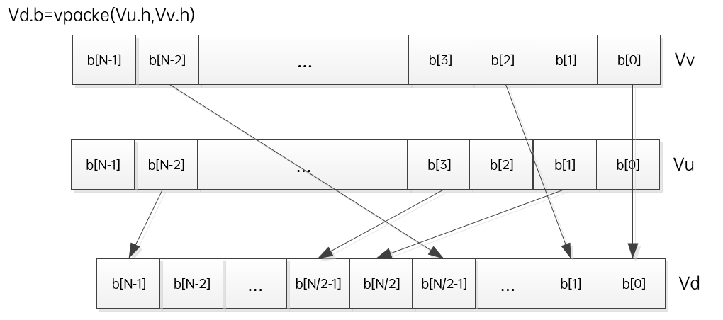 vpack:给两个vector 压缩到一个vector,从half word --> byte