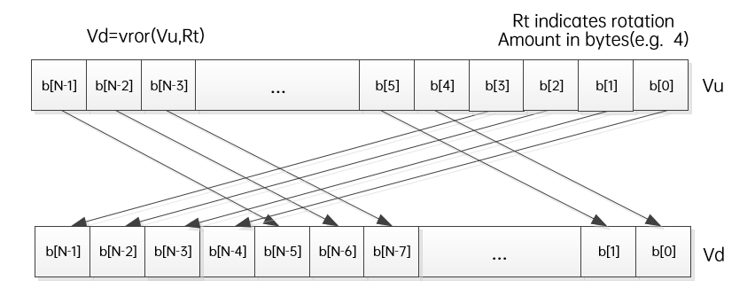 vror:循环右移,将一个vector首位当做一个环,右移Rt个字节。