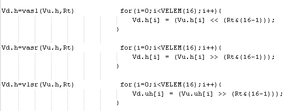 vasr/vlsr 都是右移,区别在于是有符号位和无符号数