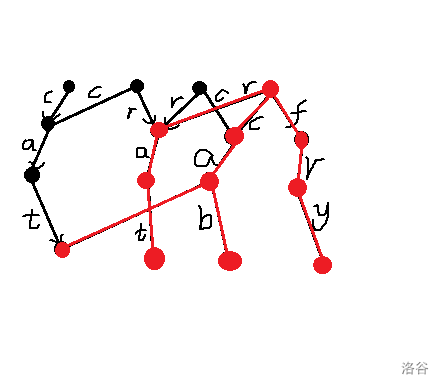 3.若 \(p \ne 0\),则对于每种字符 \(c\) ,令 \(trie[q,c]=trie[p,c]\)。