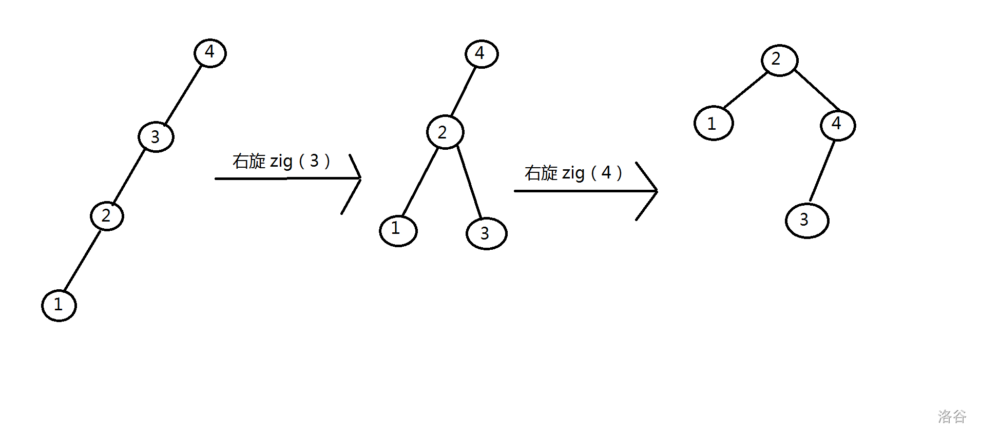 右旋操作的代码如下,\(zig(p)\) 可以理解成把 \(p\) 的左儿子绕着 \(p\) 向右转。