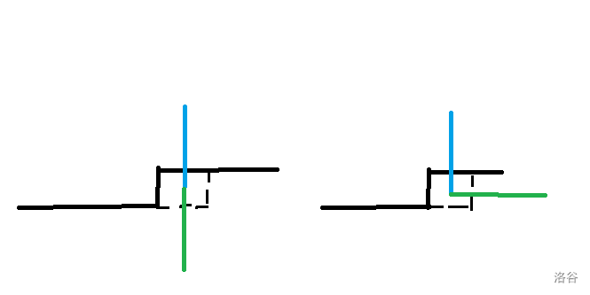 当前情况下已知状态中没有任何一条边进入当前格子。而根据题意,每一个格子都有两个方向有边进出,也就只能是剩下的两个方向有边,如下图所示。