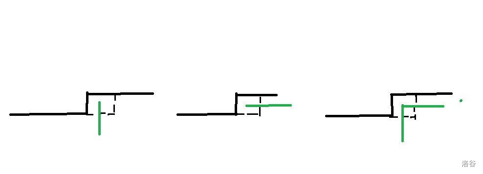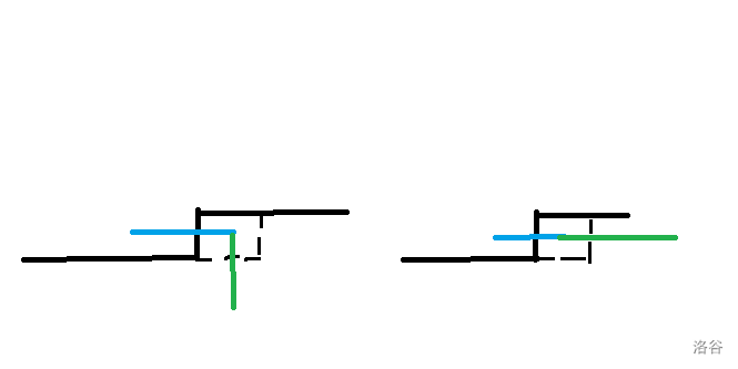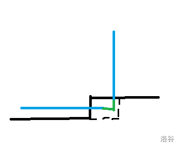 此时上面过来的路线已经拐过弯了,那么就只能向下走或不走,如下图所示。