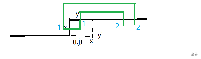 此时 \(x,y\) 的合法取值只能是 \(0\)。递推到下一个格子后,除了 \(x,y\) 的状态,边界线上其余格子的状态都不会变,而在这种情况下 \(x,y\) 的状态也不会改变,所以更新后也保存原状态不变。
