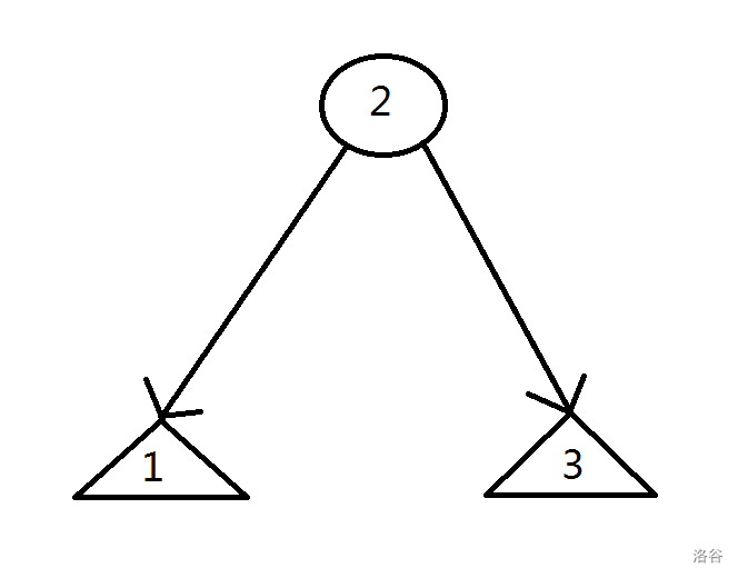如图中的 \(2\) 号节点(不一定是数字 \(2\))被打上懒标记,那么就说明要翻转 \(1\) 号节点和 \(3\) 号节点,那么就需要先 \(swap(1,3)\)。再把懒标记下传到这两个节点,同时别忘了清空当前函数的信息。如果这两个节点还有儿子,那么递归处理即可。