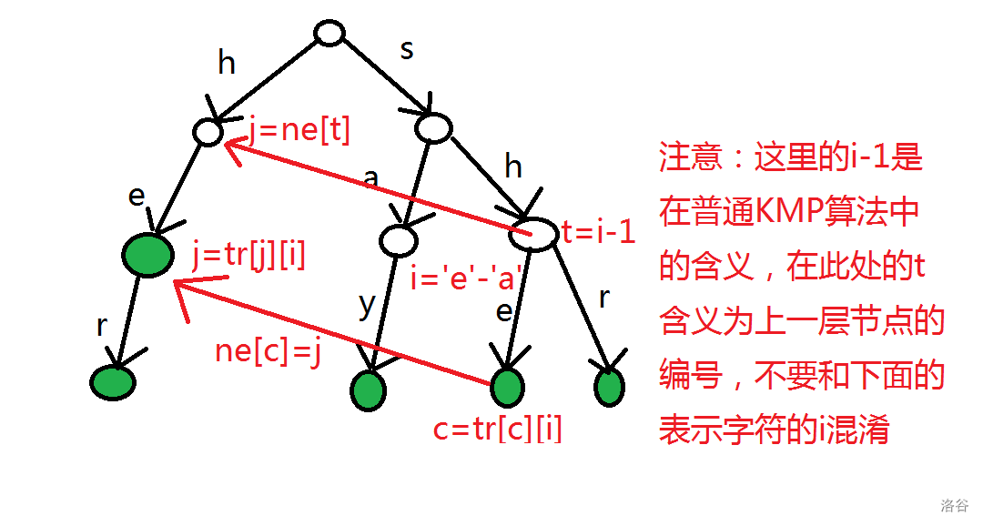 while(j&&!tr[j][t]) j=ne[j];//对于当前的文章求在Trie中的匹配