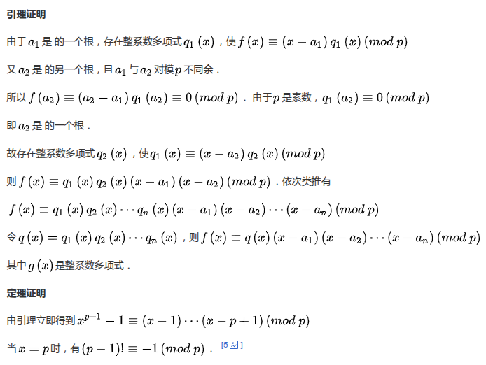 我们可以直接使用这个结论,当其中x为p时,式子便演变为了威尔逊定理的最初定理,也便证明了这个定理.