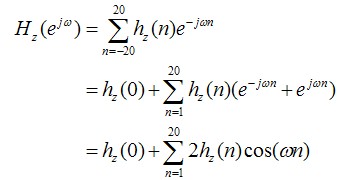 现在,让我们看看其这个滤波器的频响。所谓频响,就是计算其单位冲击响应的离散时间傅里叶变换,