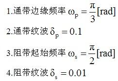 为了验证效果,我们输入实际的信号看看。这里,我们选择采样周期为10ms(0.1ms,2014.10.3日修正),那么,其通带频率和阻带起始频率为