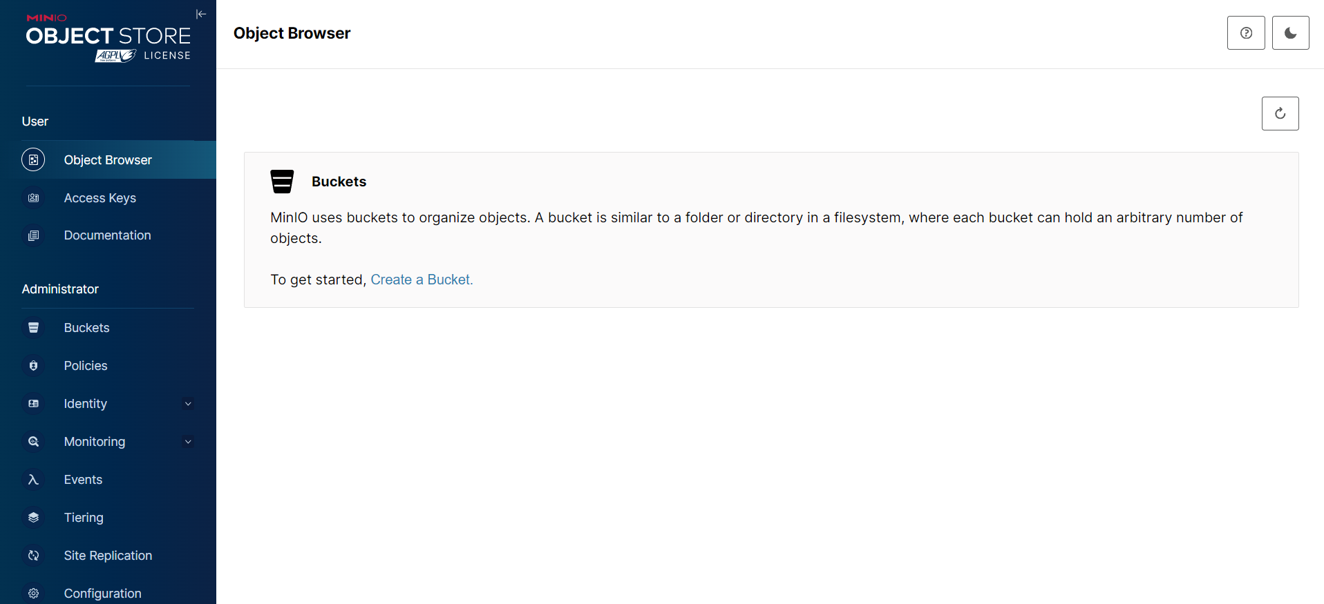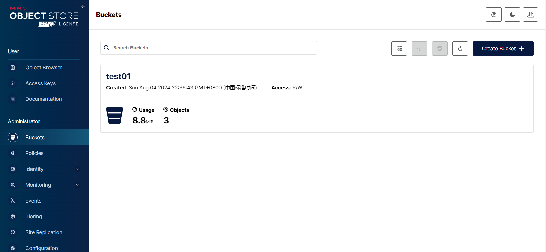 - 点击侧边栏的Object Browser,点击创建的存储桶即可上传文件