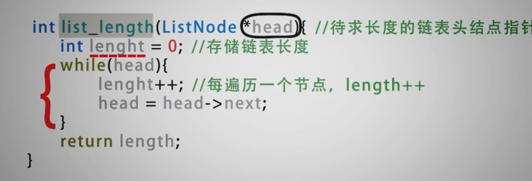 计算链表长度的函数: