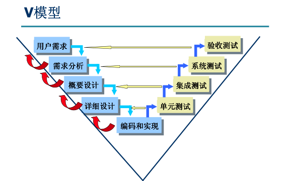V模型体现的主要思想是开发和测试同等重要,左侧代表的是开发活动,而右侧代表的是测试活动;