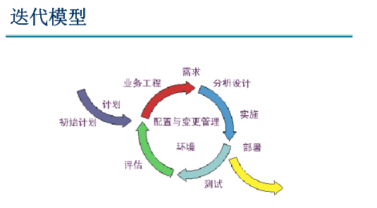迭代模型包括了一系列的迭代,每一个迭代都包括一些或者许多的开发活动(需求、分析、设计、实现等等);