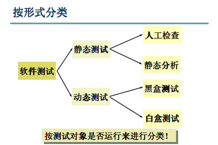 人工检查:通过人工的方式,对软件产品的设计规格说明的审查,对程序代码的阅读、审查等;走查、审查、评审