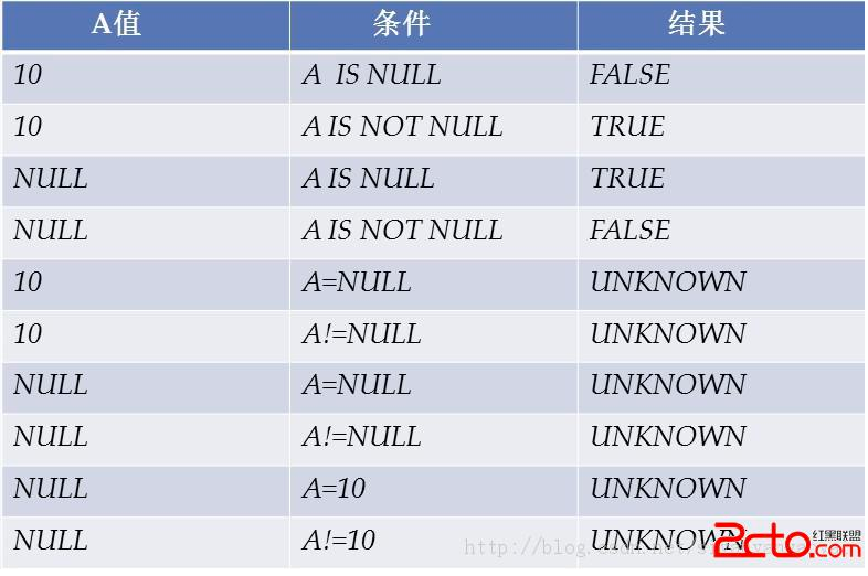 8.任何和NULL的比较操作,如<>、=、<=等返回UNKNOWN(这里的unknown就是努力了,他单独使用和布尔值false类似),判断和比较规则总结如下: